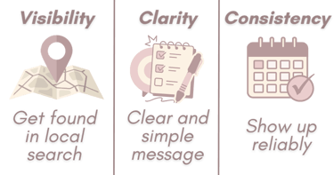 Next comes clarity. Your website, social profiles, and business listings should clearly explain: